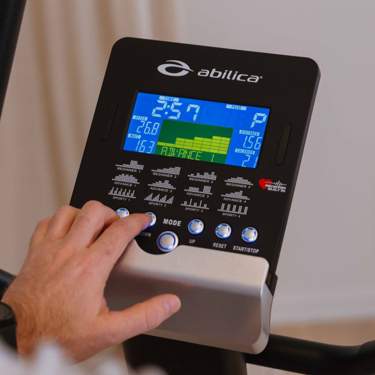 Modellen har 32 elektroniskt justerbara nivåer av magnetmotstånd, vilket gör det enkelt att anpassa träningsintensiteten stegvis.