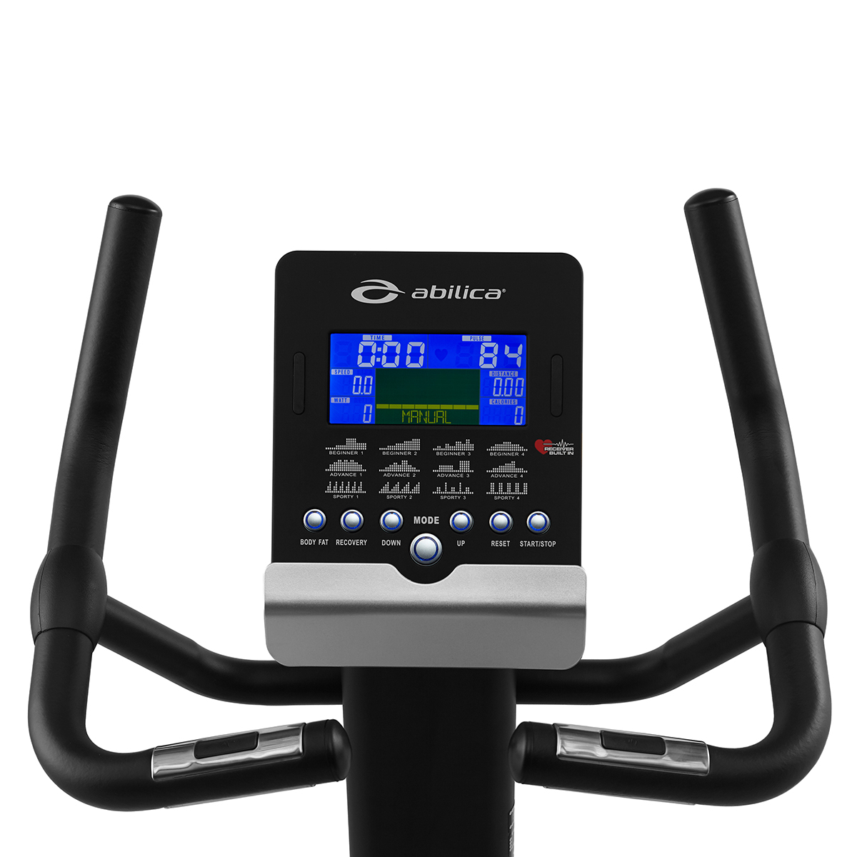 Datorn har 12 träningsprogram som ger variation utan att du behöver ställa in allt själv inför varje pass. På styret sitter handpulssensorer och datorn har dessutom trådlös pulsmottagare, så du kan följa pulsen under träningen och anpassa intensiteten bättre.