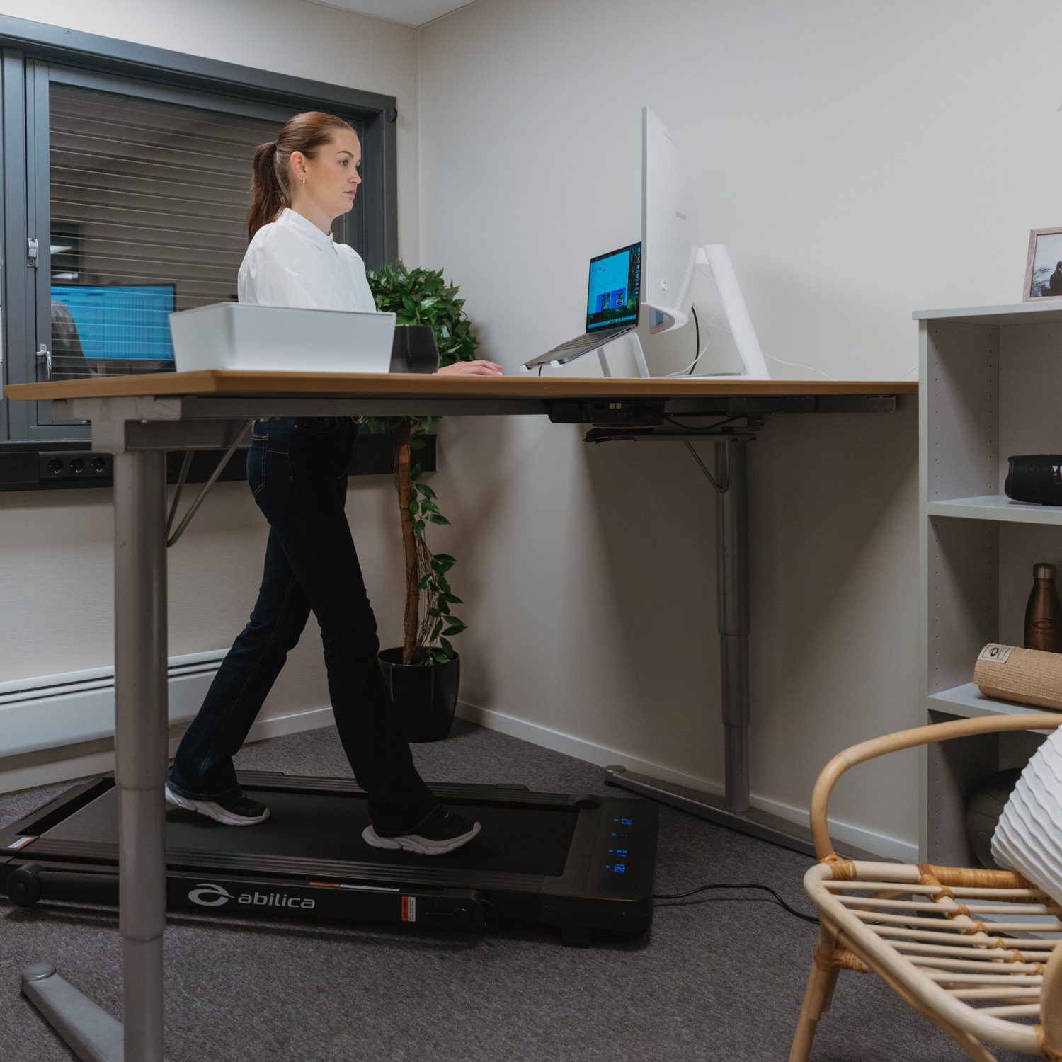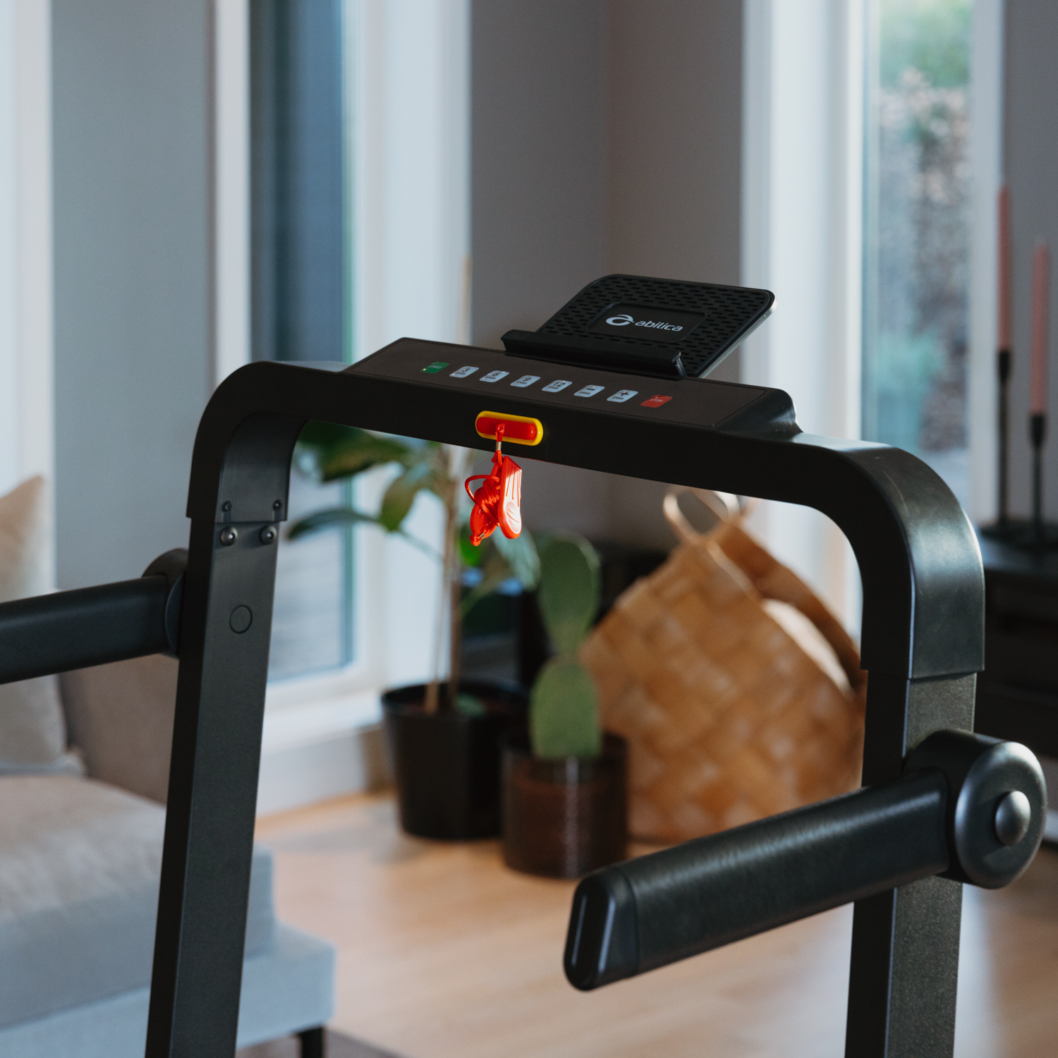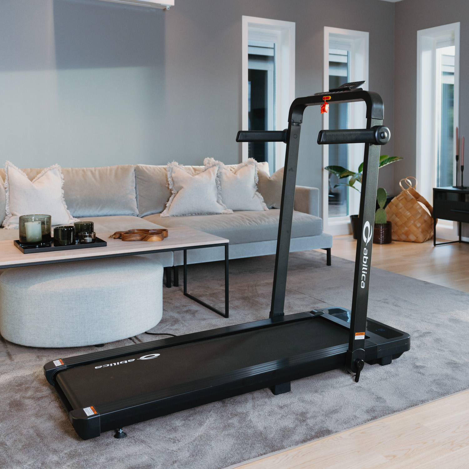 13 cm höjd i hopfällt läge gör Abilica WalkPad 20 lätt att skjuta in under soffa eller säng när du är klar. Det gör stor skillnad om du vill kunna ta fram ett gångband snabbt i vardagsrummet eller på hemmakontoret utan att ge upp golvyta permanent.