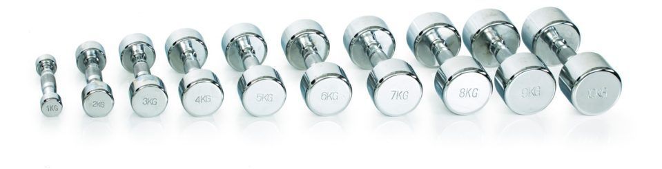 Hantlarna är tillverkade i krom och ingår som par i varje viktklass. Spannet från 1 kg till 10 kg täcker både lättare isolationsövningar och tyngre övningar för överkropp, vilket gör setet relevant både för teknikträning, rehabiliteringsnära övningar och mer traditionell styrketräning med fria vikter.