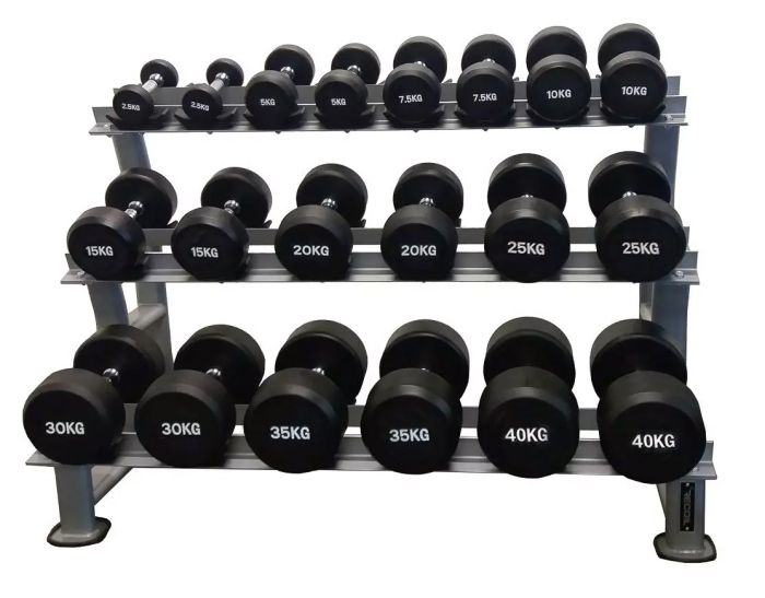 Gummerat hantelpaket 2,5-40 kg med 3-våningsställ