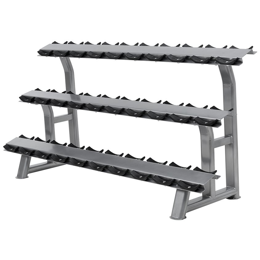 Hantelställ med 3 hyllplan för 15 par hantlar